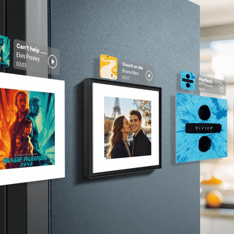 Imagine walking into your kitchen, seeing your cherished memory on the fridge, tapping it… and instantly hearing your song. Every press gives you a rush of nostalgia, comfort, or joy.